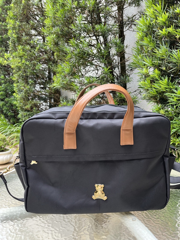 Mala maternidade tem uma modelagem moderna, ideal também para mães de gêmeos, em nyon impermeável.